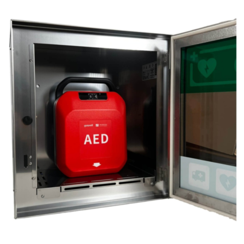 Den iögonfallande ILCOR-gröna färgen och den internationella hjärtstartarsymbolen gör skåpet lätt att hitta, även på avstånd. LED-belysning på insidan säkerställer god sikt både dag och natt, vilket sparar värdefull tid vid hjärtstopp.