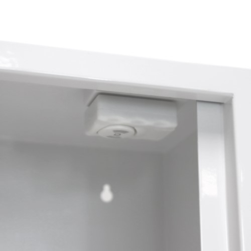 Den neutrala vita färgen gör att skåpet smälter in i omgivningen samtidigt som hjärtstartaren är skyddad och lätt att komma åt vid en nödsituation.
